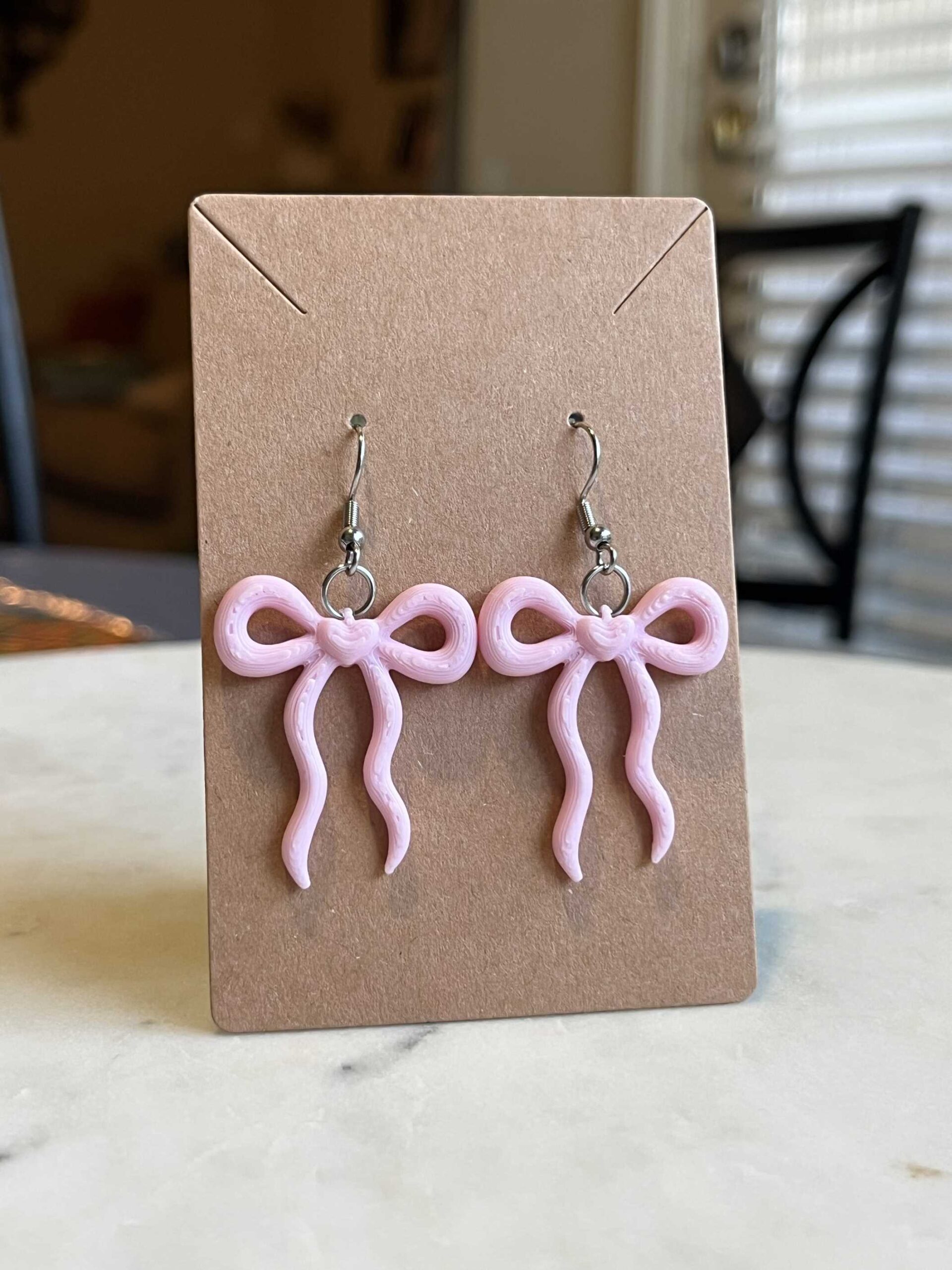 Each pair is 3D printed with care, giving them a smooth finish and lightweight feel that’s comfortable for all-day wear. The pastel pink color adds a subtle pop while keeping the design elegant and fun. Finished with classic fishhook ear wires, these earrings are easy to wear and effortlessly stylish.