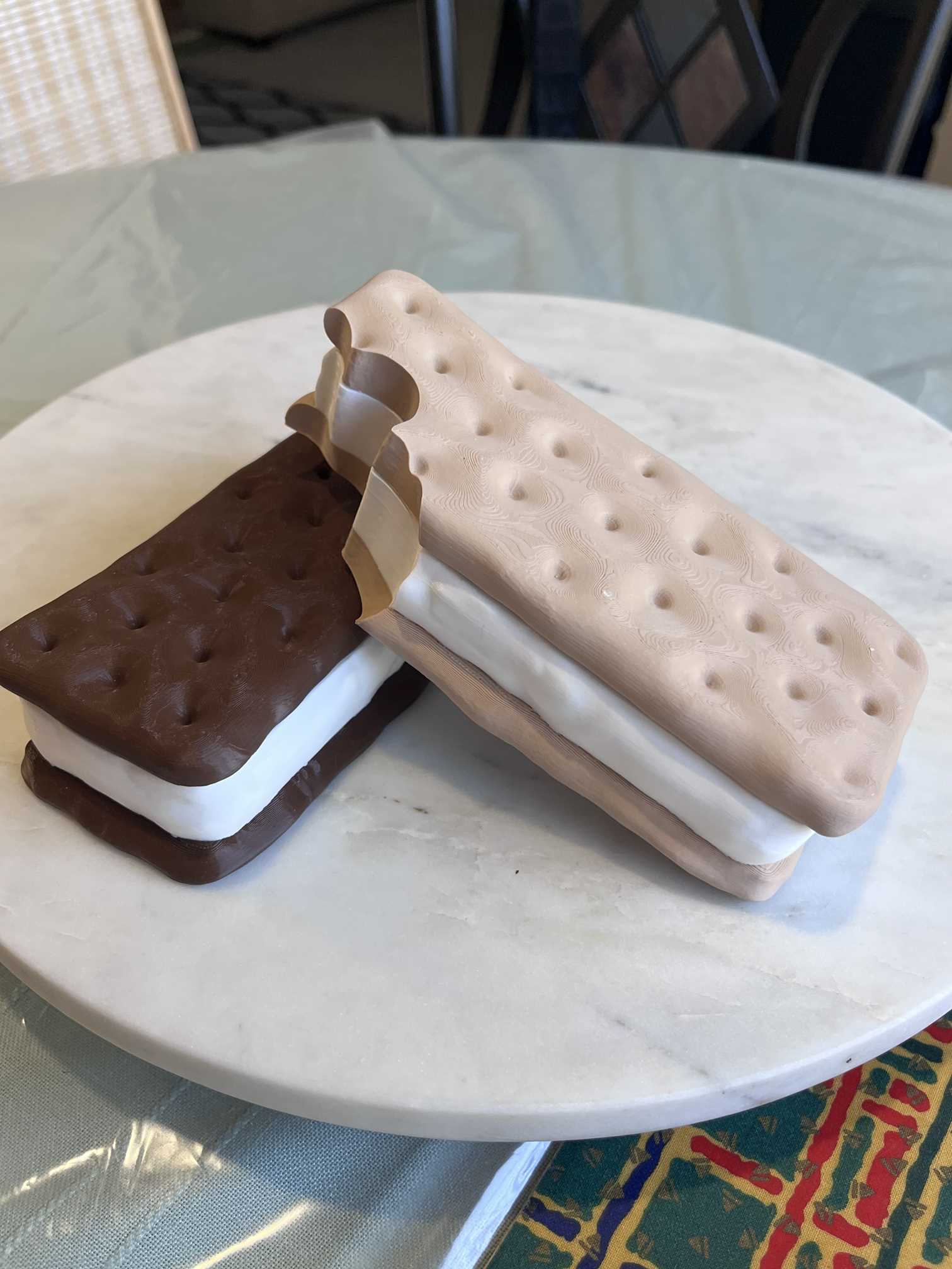 Perfect for holding small essentials like rings, earrings, coins, or desk accessories, this container is compact, lightweight, and easy to use. The 3D printed construction ensures durability while maintaining a detailed, textured look that mimics a real ice cream sandwich.