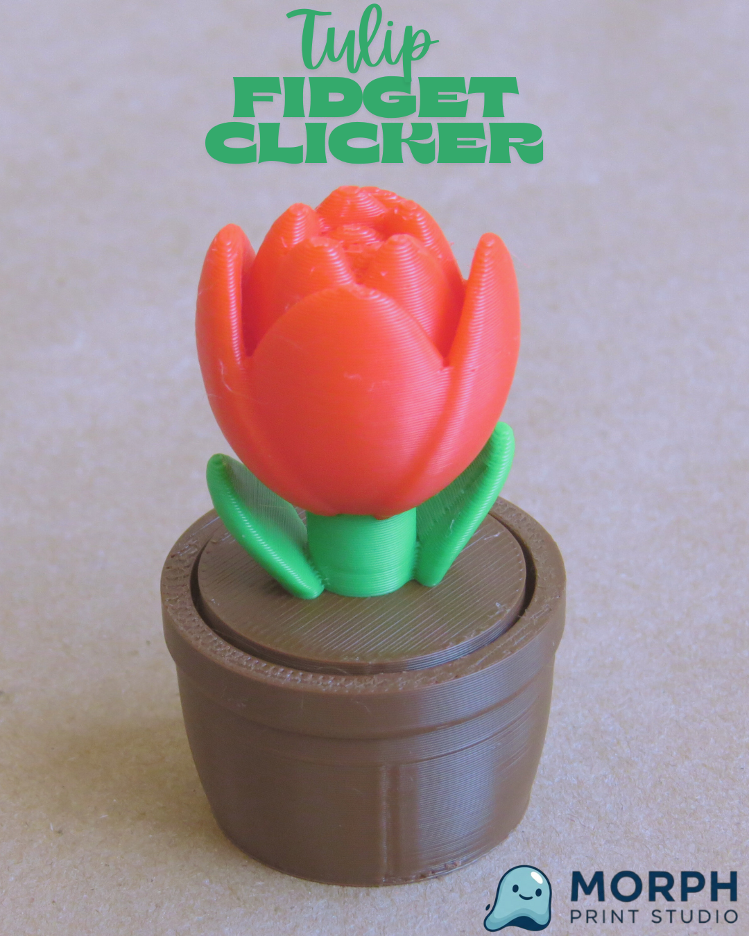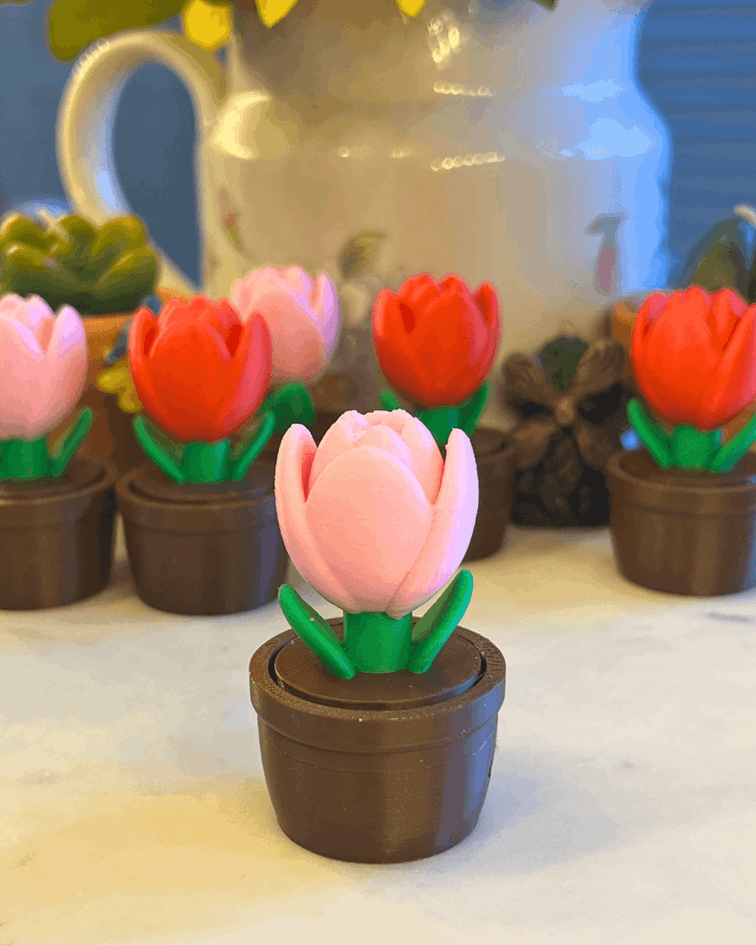 Bring the beauty of spring to your desk with the Tulip Fidget Clicker! This unique toy captures the elegant look of a potted tulip with a pleasing tactile experience, making it an ideal sensory tool for focus, stress relief, and a touch of botanical charm.