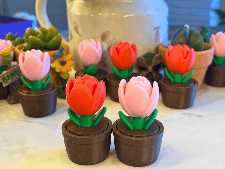 Bring a bloom of focus to your desk! Our Tulip Fidget Clicker offers a beautifully designed, satisfying click for instant stress relief. (Cutie3D)